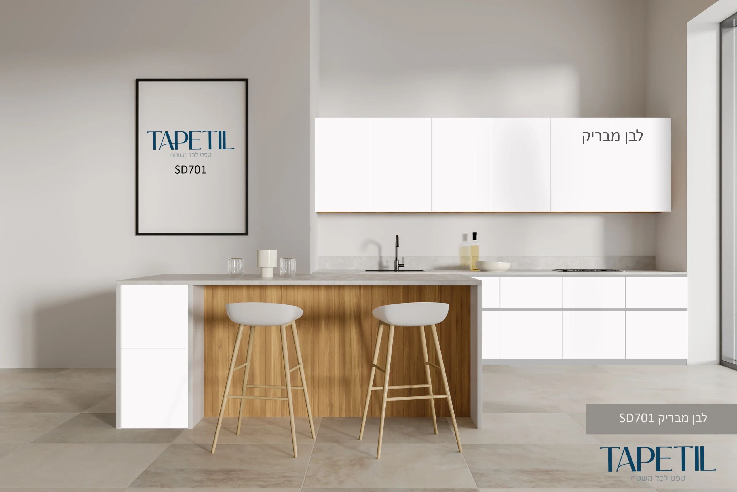 טפט למטבח לבן מבריק SD701